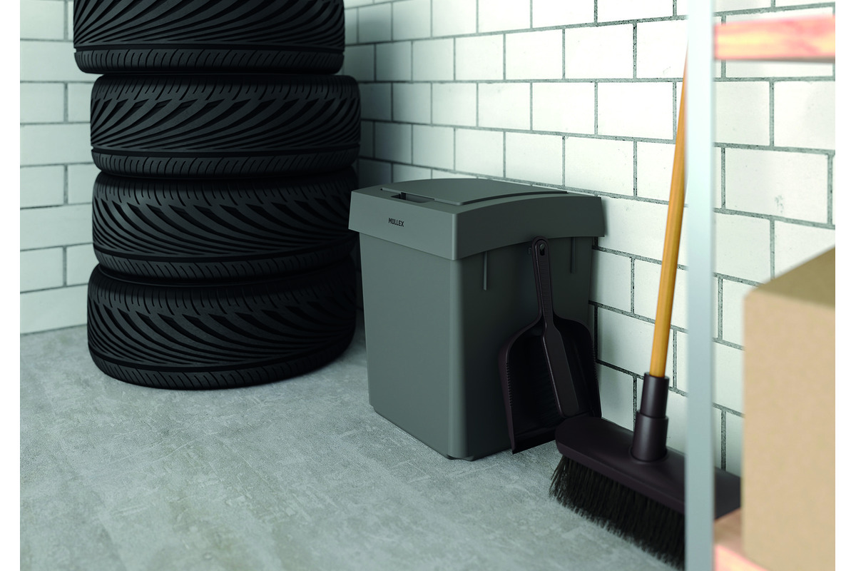 Das freistehende Abfallsystem besteht aus einem 40 Liter Behälter, in
