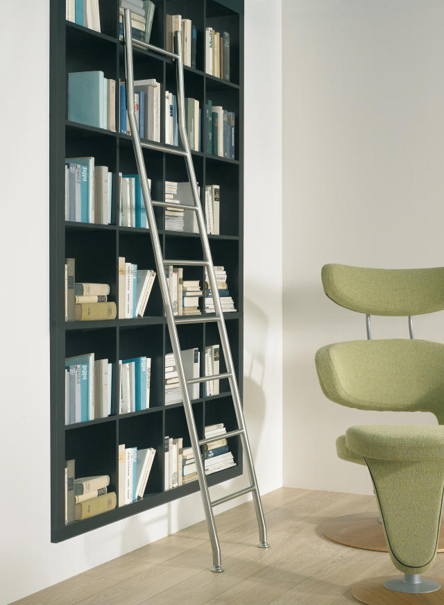 Unser Bibliotheksleitern sind grundsätzlich individuelle Maßfertigungen. Material hochwertiges Edelstahl Korn 600 fein geschliffen, Made in Germany.