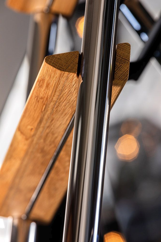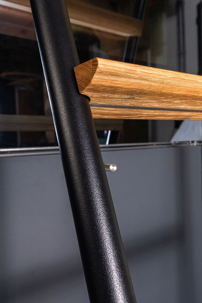 Gesamthöhe 2000mm mit 6 Stufe Eiche massiv oder 2500mm mit 8 Stufen Eiche massiv.