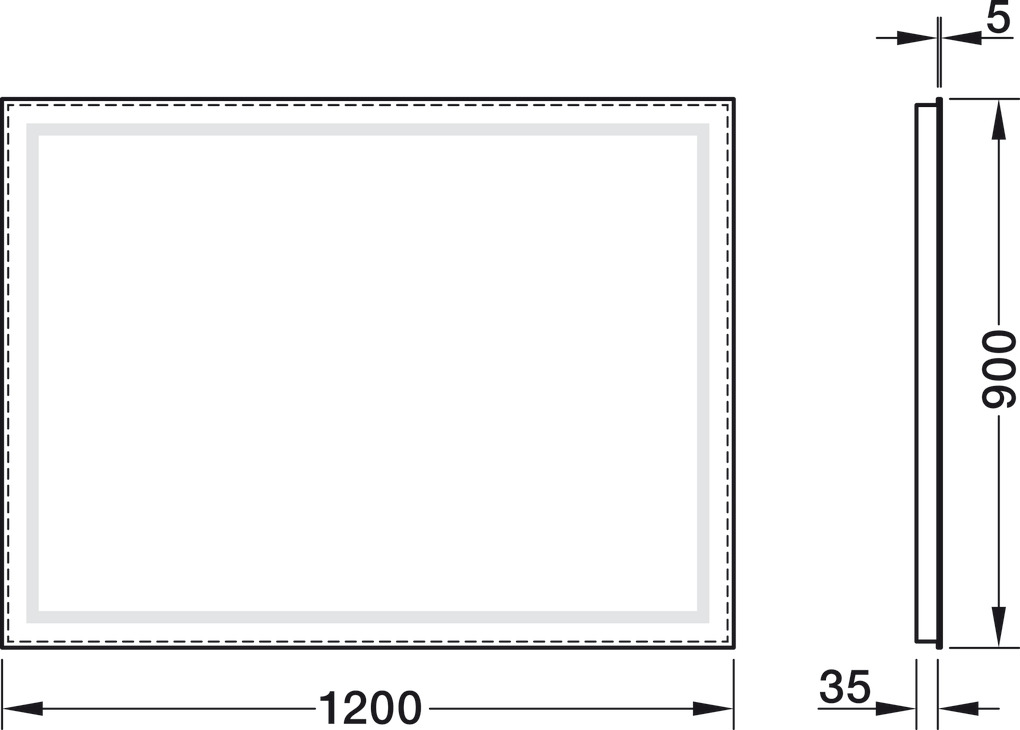 1200x900mm 29 Watt mit Spiegelheizung 79 Watt.