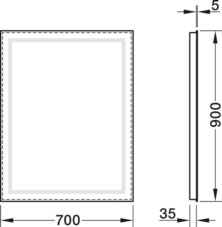 700x900mm 24 Watt mit Spiegelheizung 49 Watt.