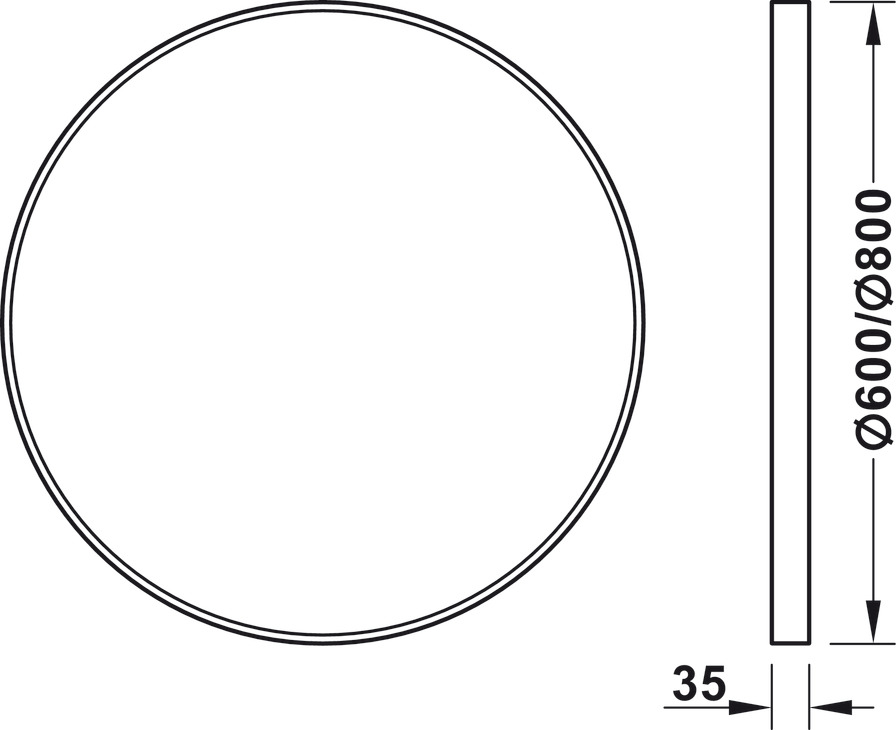 D 600mm 20 Watt mit Spiegelheizung 32 Watt.