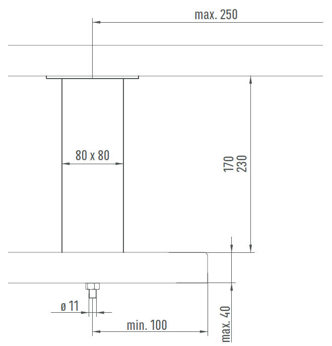 Barkonsole aus Aluminium Vierkantprofil 80x80mm, ohne oder mit Steckdose.