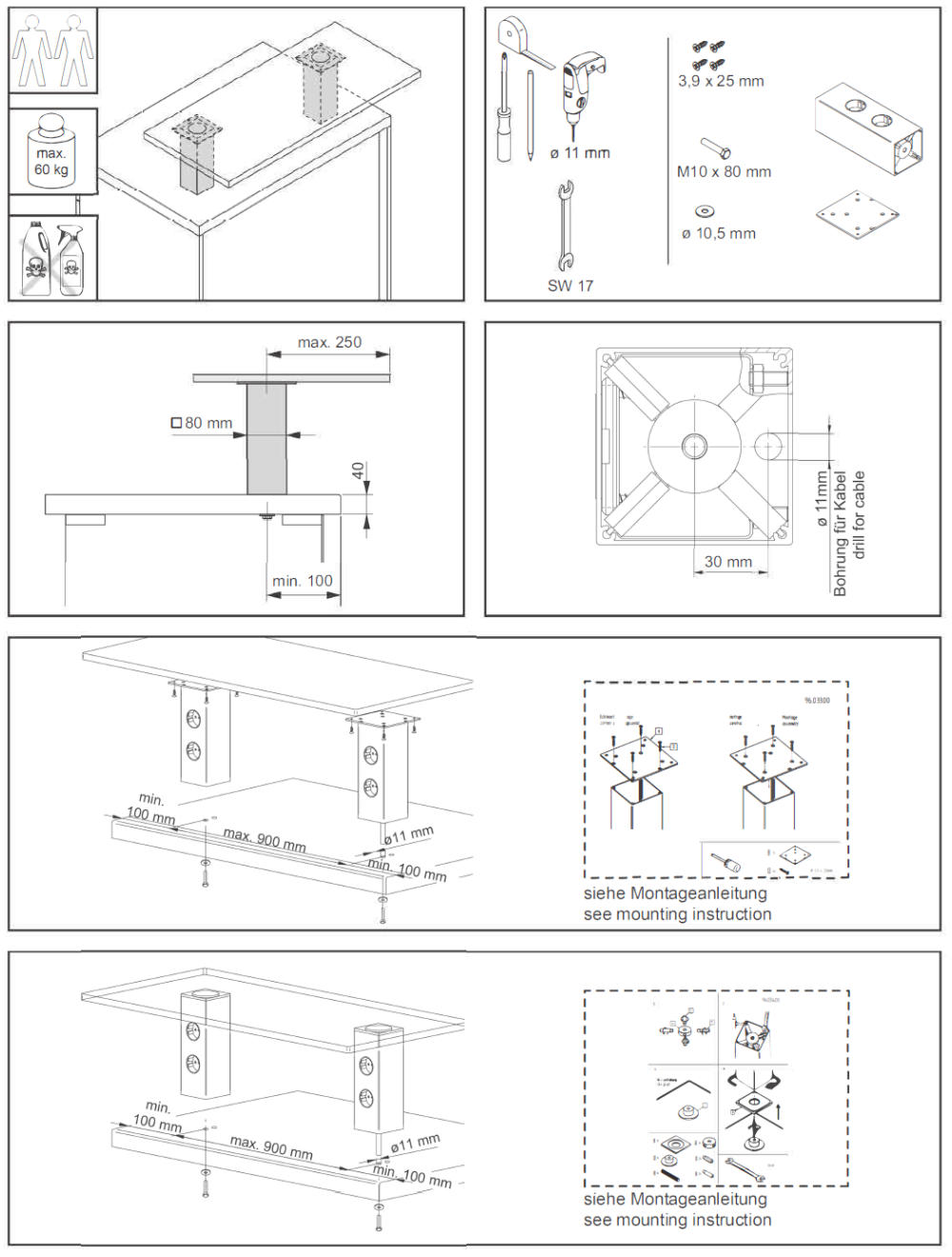 Oberfläche Schwarz beschichtet, Befestigung für Holzplatten 120x120x3mm inklusive.