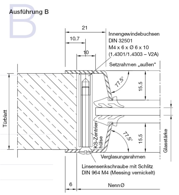 Bullaugen Edelstahl Typ B für einseitig sichtbare Verschraubung