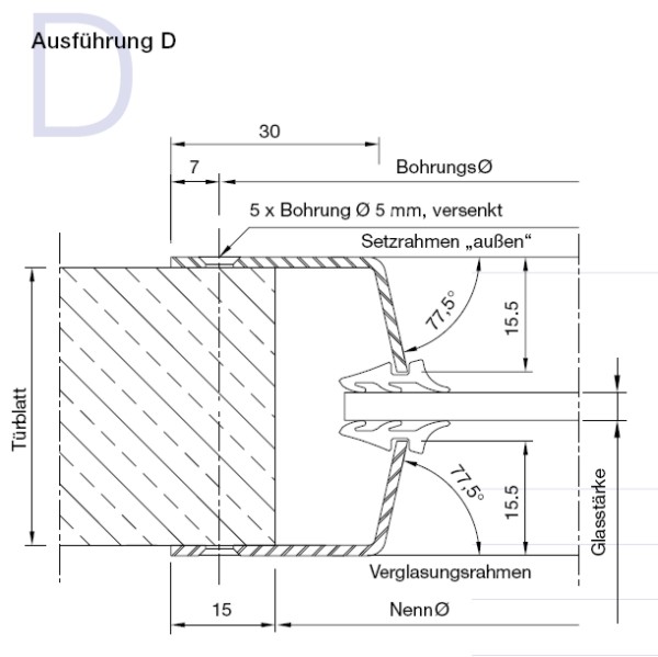 Nenndurchmesser in mm = Ausschnittmaß im Türblatt.