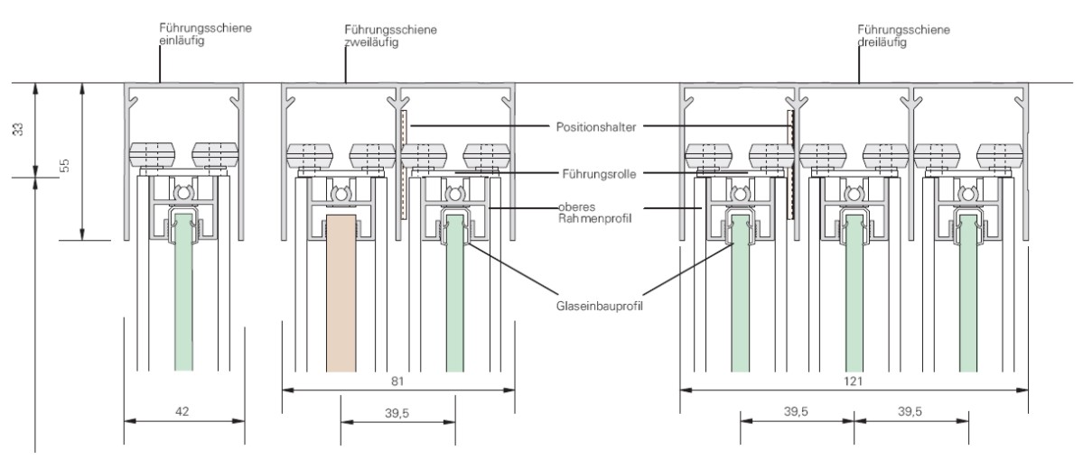 Gleit-Schiebetüren Deckenführungsprofile Maßanfertigung nach Kundenvorgabe / Zeichnung,
