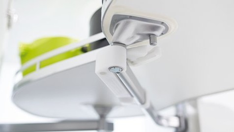 Set bestehend aus: 2 Schwenkböden Weiss mit verchromter Reling oder Grau mit grau beschichteter Reling, Achsrohr für Einbauhöhe 600-750mm.