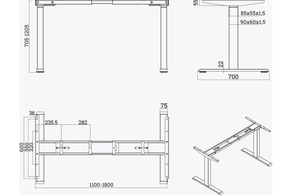 zweistufiges elektrisch höhenverstellbares Tischgestell, Auffahrschutz,