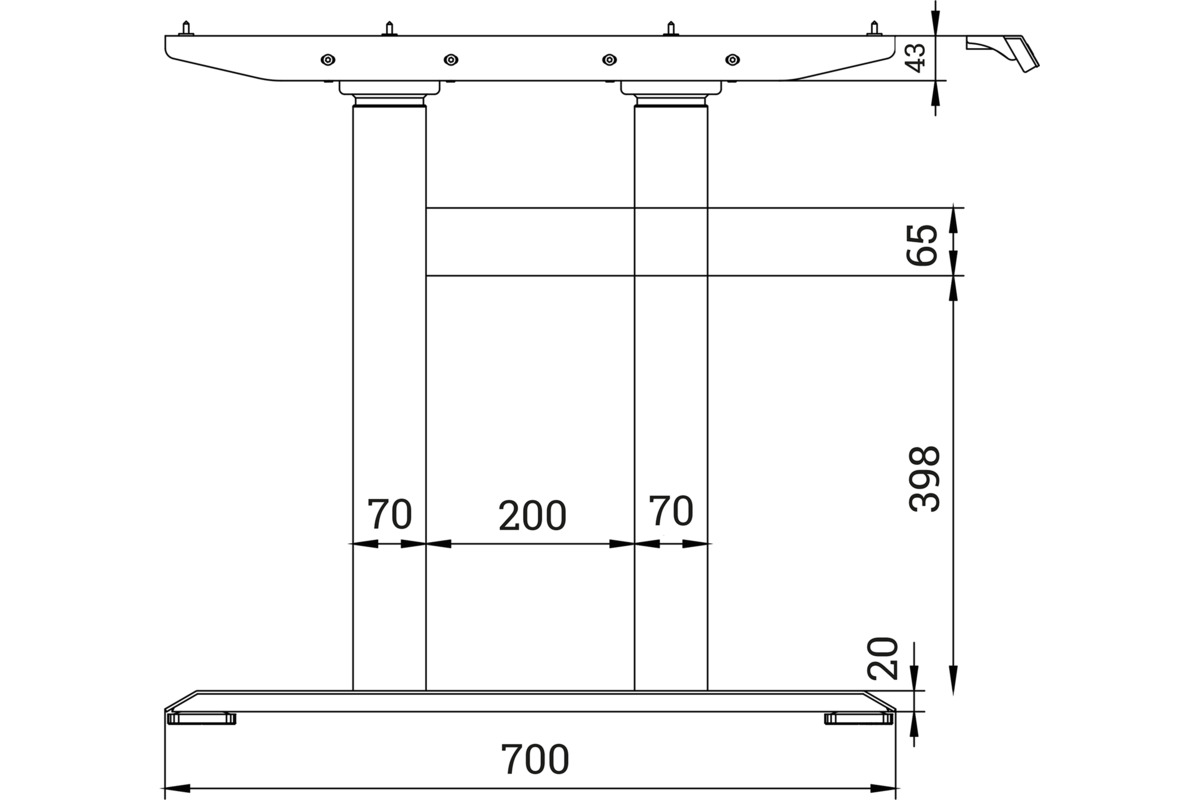 Elektrisch höhenverstellbares Tischgestell, Auffahrschutz, dynamische Belastung bis 450 kg, Hubgeschwindigkeit 17 mm/s. Handsteuerung: Eingangsspannung 220 - 240 V, inkl. Überlastungsschutz, max. 2 min on, 18 min off, energiesparend mit automatischer Abschaltung, Anzeige digital, 3 Speicherplätze, USB-A Ladefunktion. Inkl. Montageanleitung und Montagematerial, ohne Tischplatte.