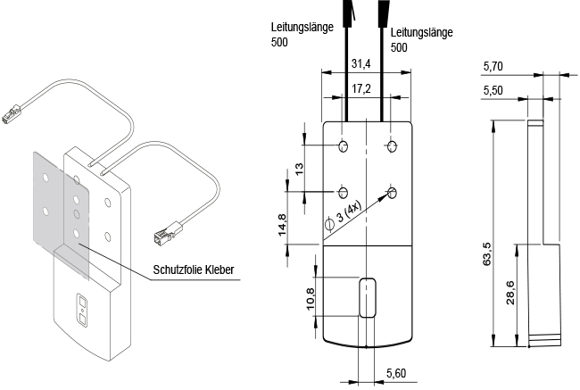 - Abmessungen: 31,4x 63,5x 5,7 mm