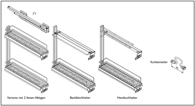Unterschrank Etagenauszug in 3 verschiedenen Ausführungen