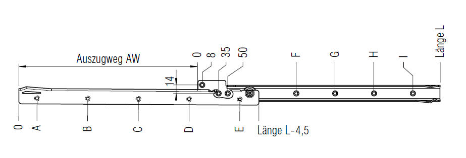Auszugsweg der jeweiligen Länge im Datenblatt ersichtlich.