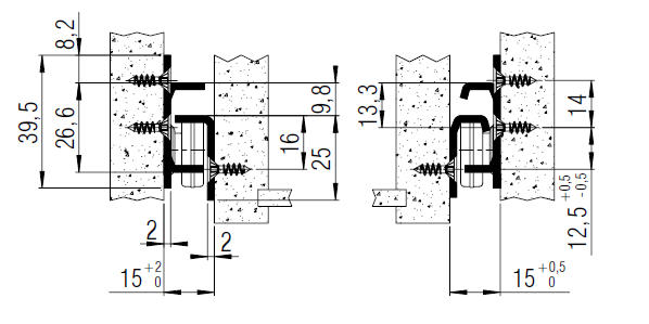 Für seitliche Schubladenmontage ohne Auflagewinkel, Einbaubreite 15,0mm (x2).