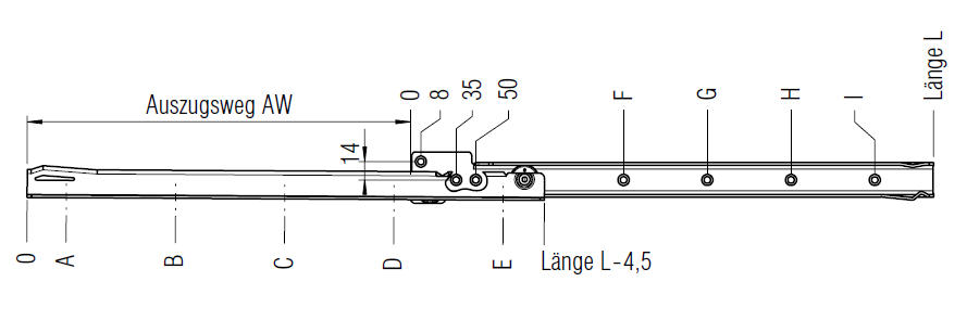 Auszugsweg der jeweiligen Länge im Datenblatt ersichtlich.