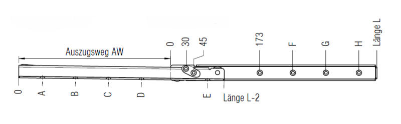 Auszugsweg der jeweiligen Länge im Datenblatt ersichtlich.