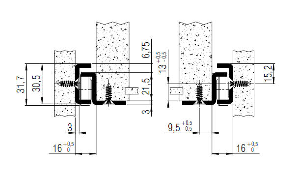 Für seitliche Schubladenmontage mit Auflagewinkel, Einbaubreite 16,0mm (x2), dynamische Belastung bis 70kg.