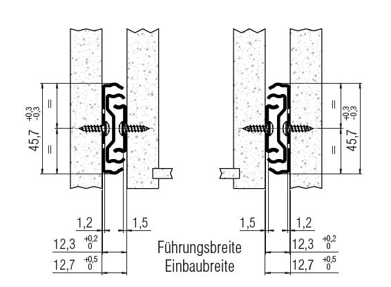 Für seitliche Schubladenmontage mit Einzugsdämpfung, Einbaubreite 12,7mm (x2), dynamische Belastung bis 60kg.