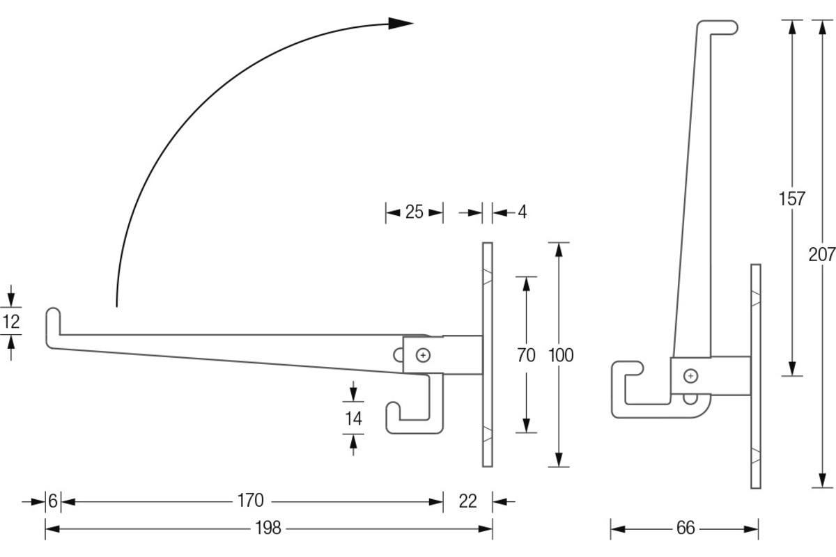 Ausladung 200mm, Höhe 56mm, Breite 66mm