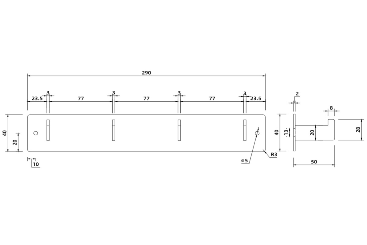 Garderobenhakenleiste Eisen Schwarz matt, mit 4 Haken