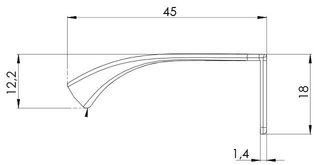 für Plattenstärken ~19mm, Breite 45mm, Höhe 12,2mm, Höhe Anschraubplatte 18mm.