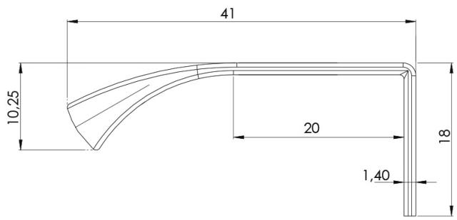 für Plattenstärken ~19mm, Breite 41mm, Höhe 10,25mm, Höhe Anschraubplatte 18mm.
