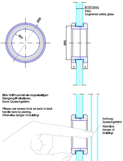 Griffmuschel 5941 Edelstahl für Glastüren Stärke 8-12mm, Bohrung in Glastüren Durchmesser 50mm