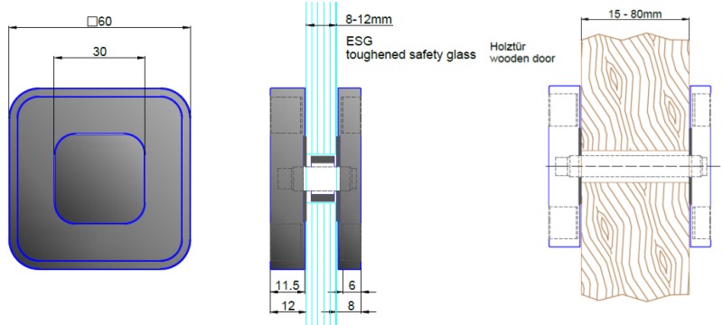 Bohrung in Glastüren Durchmesser 16mm, Bohrung in Holztüren Durchmesser 16mm.