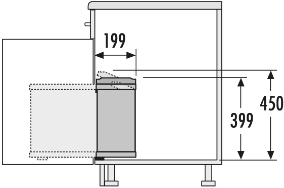 Öko-Flex MF Swing 45.2/16 w, Einbau-Abfallsammler für Schränke ab 450 mm Breite mit Drehtür.