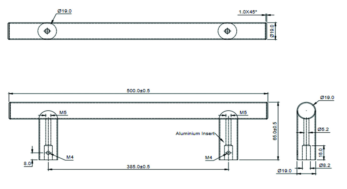 Handtuchhalter für Wandmontage, Stangendurchmesser 19mm, Sockeldurchmesser 19mm, Gesamthöhe 65mm.