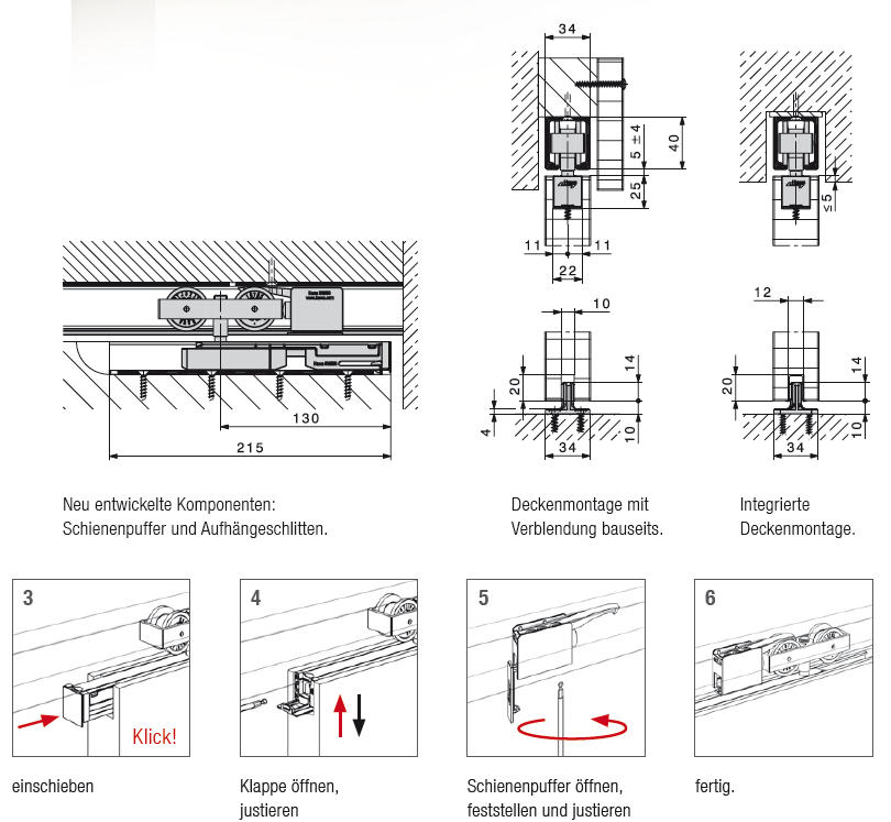 Beschlagsets HAWA-Junior 80/B für 1 Tür Gewicht bis 80kg,