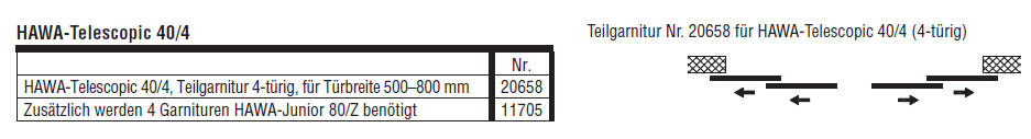 1 Beschlagsatz HAWA Telescopic 40/4 - Artikel Nr. 20658