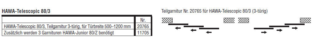 1 Beschlagsatz HAWA Telescopic 80/3 - Artikel Nr. 20765