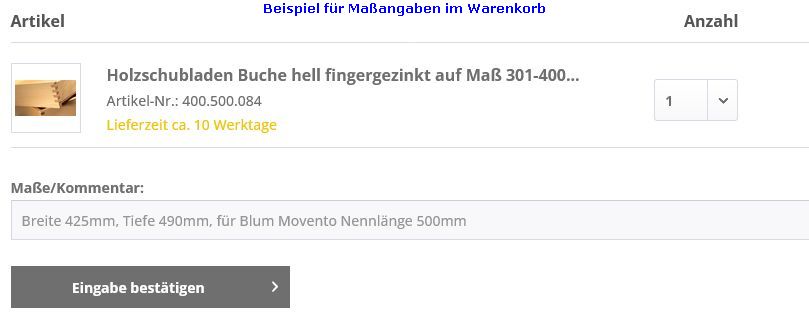 Produktinformationen "Holzschubladen Buche hell fingergezinkt auf Maß"