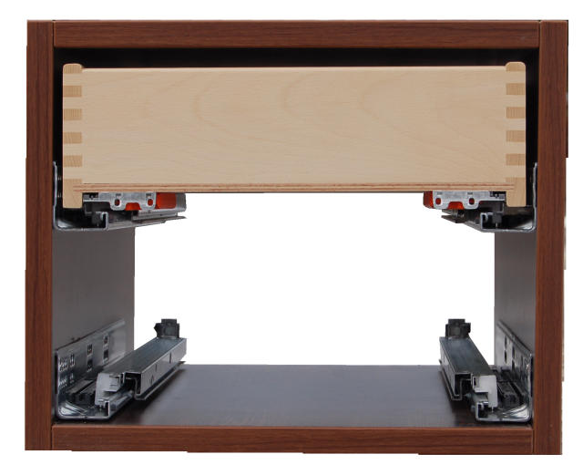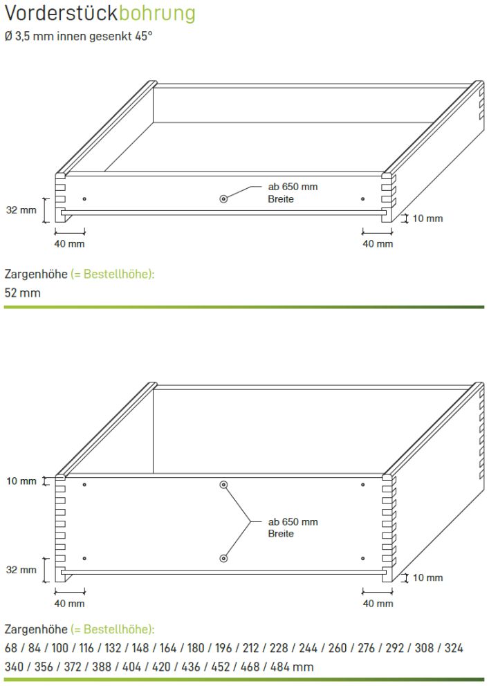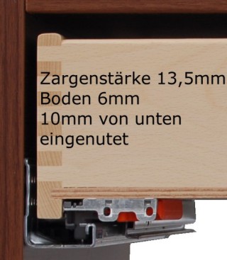 Die Schubladenbreite und Schubladentiefe ergibt sich aus der lichten Korpusbreite und der jeweils eingesetzten Führung.