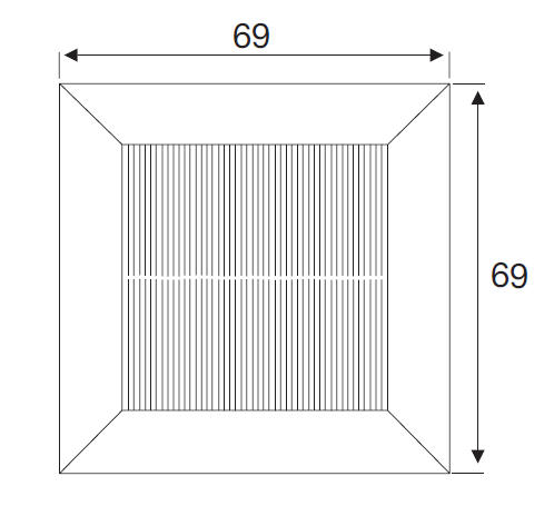Außenmaße: 69x69x25mm / Einlassmaße 61x61mm.