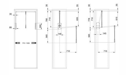 Kleiderlift Servetto Industriemodell bis 10kg. Breite 770-1200mm.