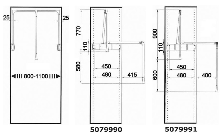 Gehäuse Schwarz, Querstange Stahl Grau, Breiten 800-1100mm.