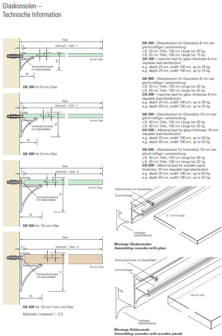 Produktinformationen "Konsolen Aluminium GK 500 für 10mm Glas"