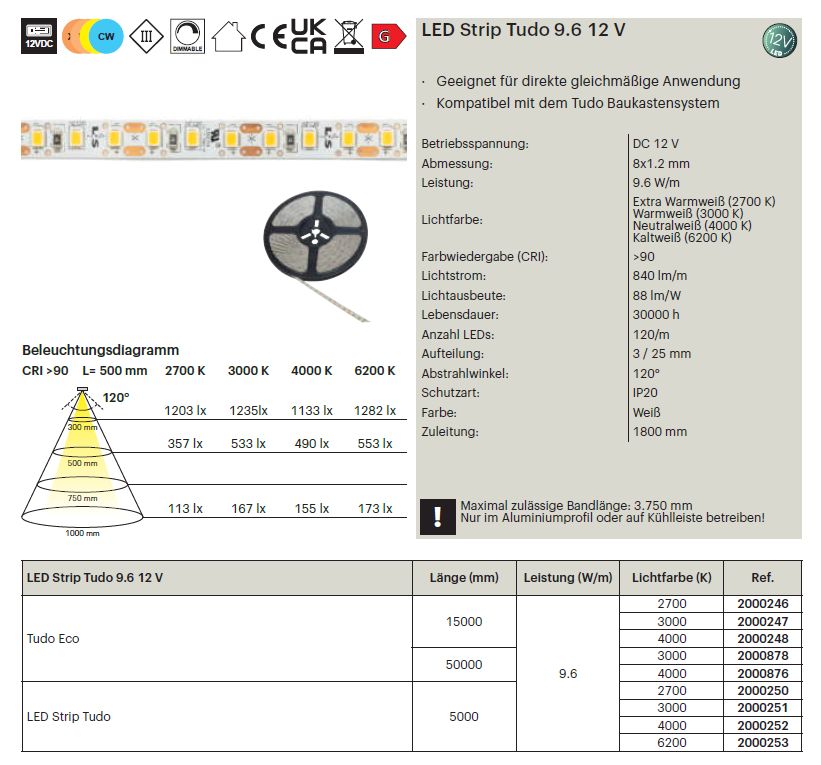 Produktinformationen "LED Band Tudo 9,6 / 12V"