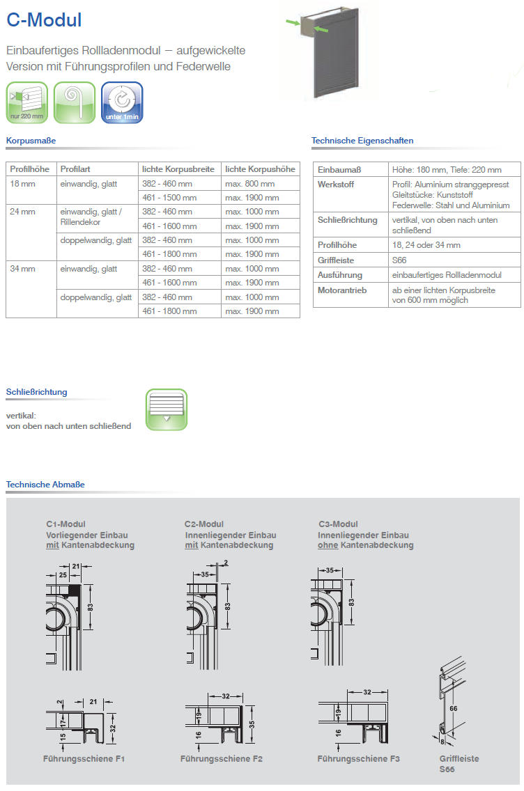 Rollladenmodul A mit geringer Einbautiefe von nur 220mm