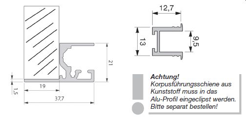 2 Stück Vorbauprofil Aluminium und Führungsprofile Kunststoff, für 19mm Seitenstärke.