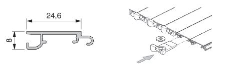 Für vertikal laufende Rollläden, zum Einsetzen in Elemente mit 19mm Seitenstärke