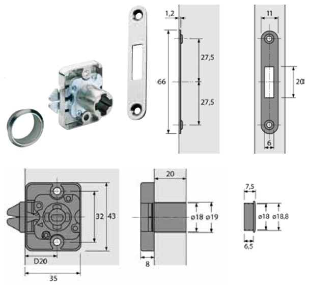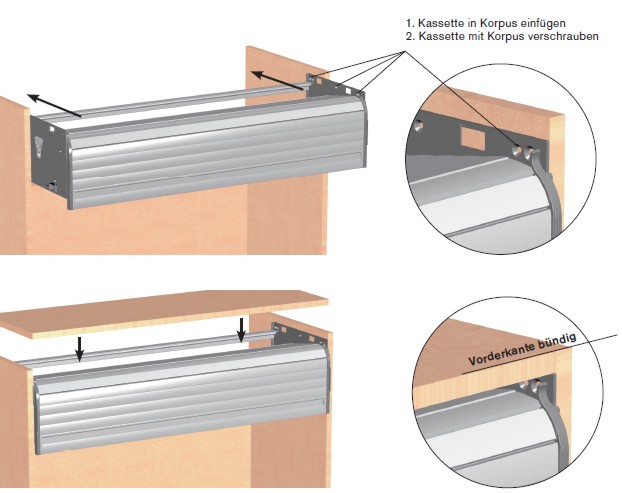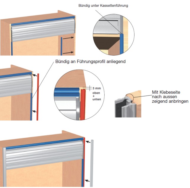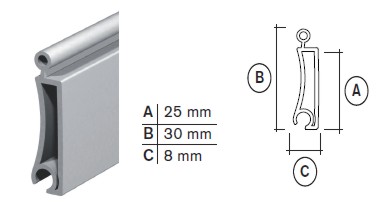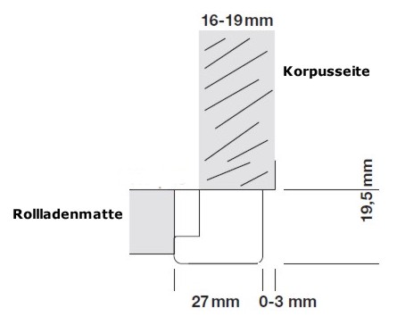 Für vertikal laufende Rollläden, zum Einsetzen in Elemente mit 16/19mm Seitenstärke