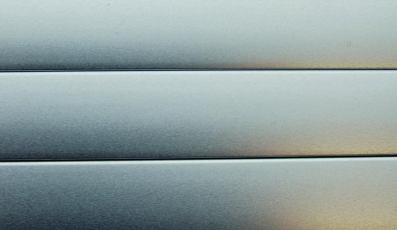 Komplett vormontiertes Rollladenmodul Trägerlamellen aus Kunststoff Aluminium Edelstahlfinish belegt.