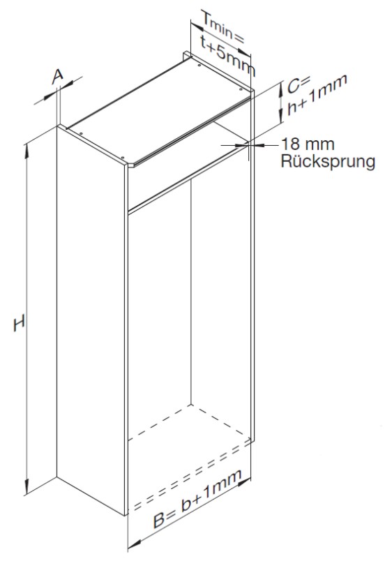 Mindestangaben. Lichte Schrankbreite in mm, Gesamtschrankhöhe in mm,