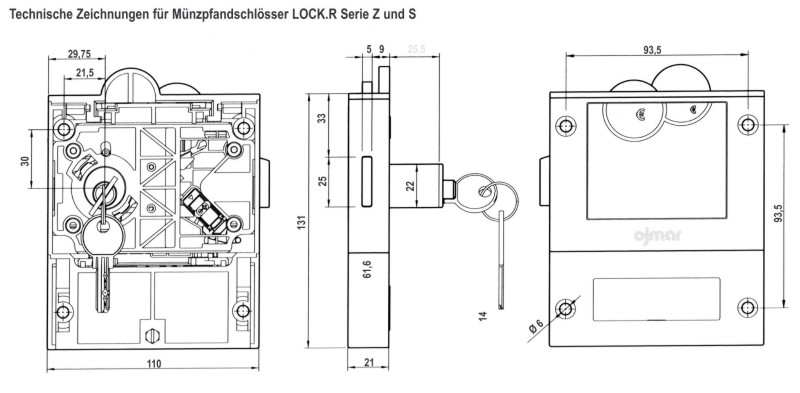 Lieferumfang Münzpfandschloss LOCK.R Serie Z für 1- oder 2 Euro Münzen (frei wählbar):