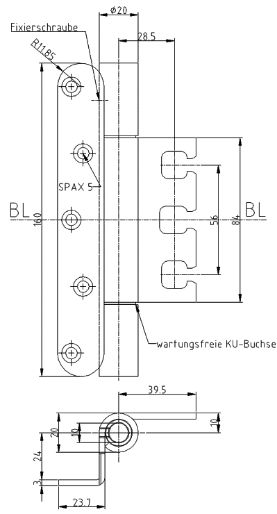 Anwendung: überfälzte Türen, wartungsfrei, mit Stiftsicherung, eingebaut demontierbar.