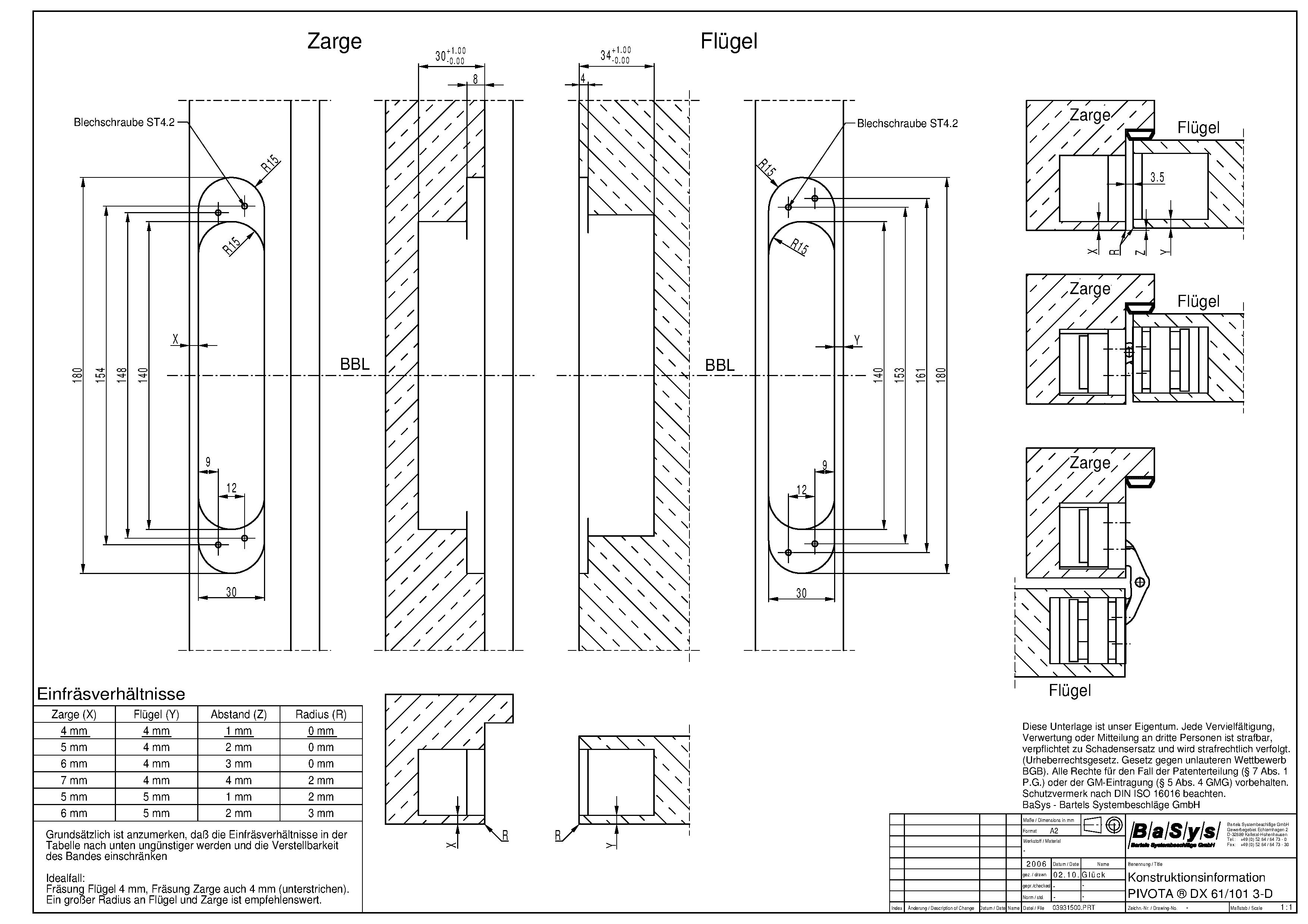 Zubehör: PIVOTA ® DX Aufnahmen für Futter- oder Stahlzargen, Frässchablone.