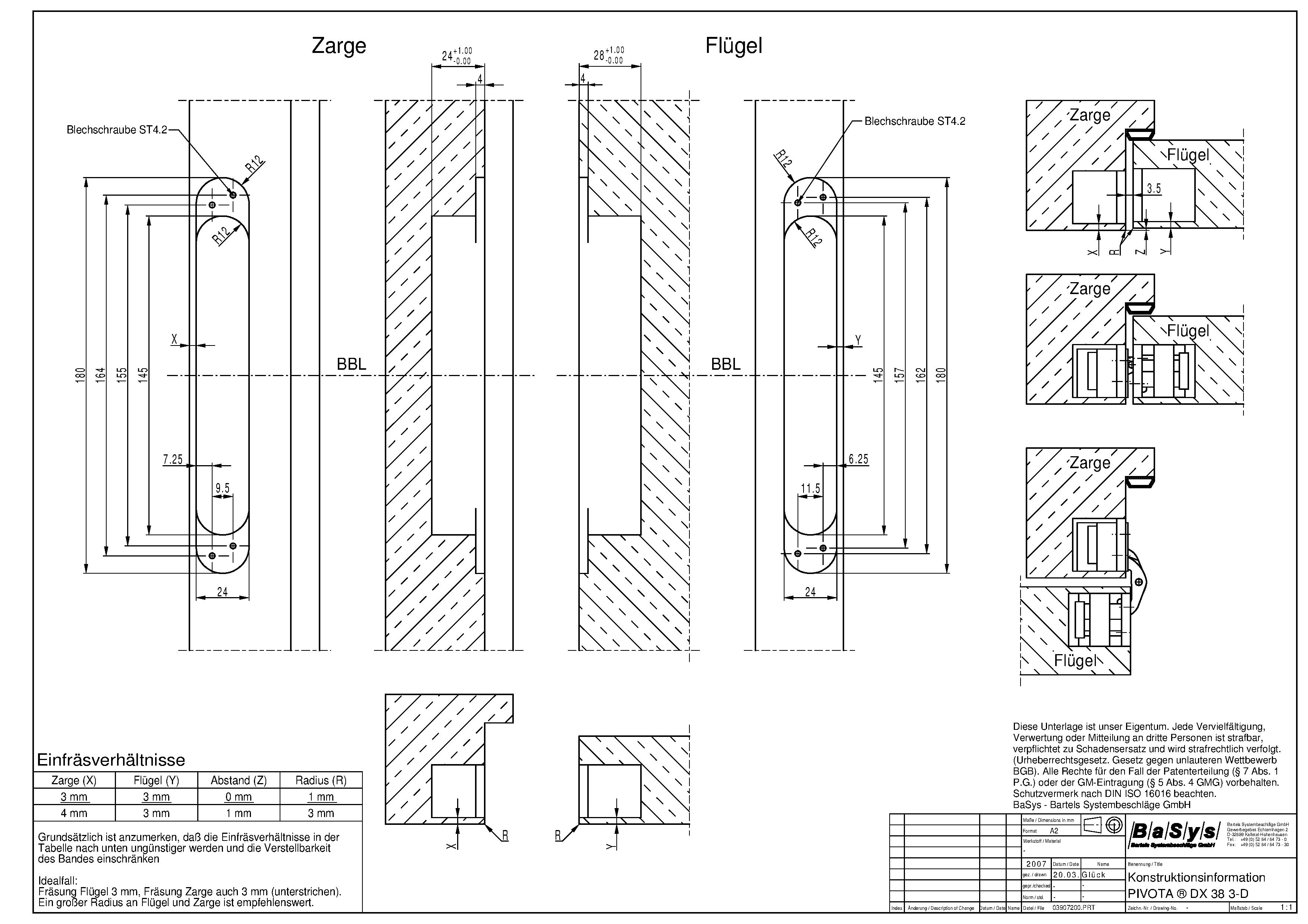 Zubehör: PIVOTA ® DX Aufnahmen für Futter- oder Stahlzargen, Frässchablone.
